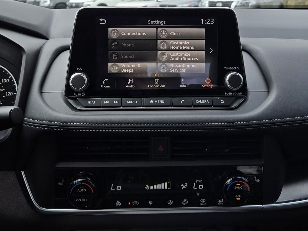 - Radio: AM/FM NissanConnect -inc: 6 speakers plus 2 tweeters, Apple CarPlay, Android Auto, 8" color touch screen display, Bluetooth®, 2 front USB type-C, Wi-Fi hotspot and NissanConnect Services powered by SiriusXM