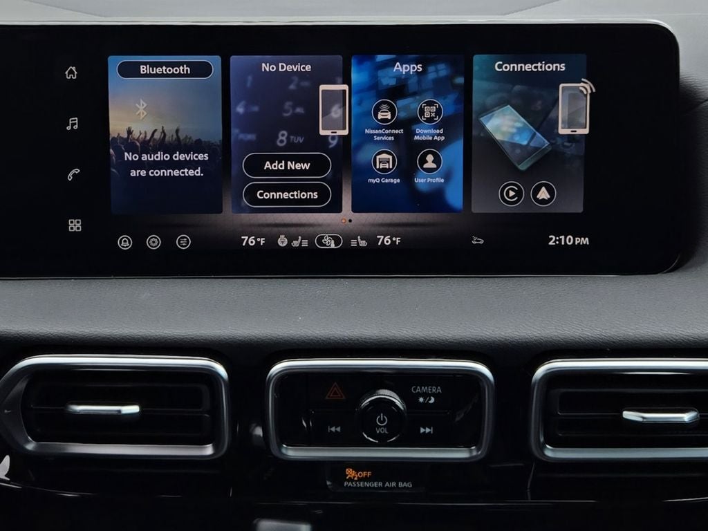 - Radio: AM/FM w/RDS/MP3 -inc: 6 speakers, 12.3" NissanConnect multimedia center display, Bluetooth® hands-free phone system, streaming audio via Bluetooth®, hands-free text messaging assistant, Siri Eyes Free, Google Assistant voice recognition, wireless Apple CarPlay and Android Auto, NissanConnect services, Wi-Fi hotspot, Over-The-Air (OTA) updating for headunit firmware via Wi-Fi WPA2 connection and (2) front USB connection port (type C)