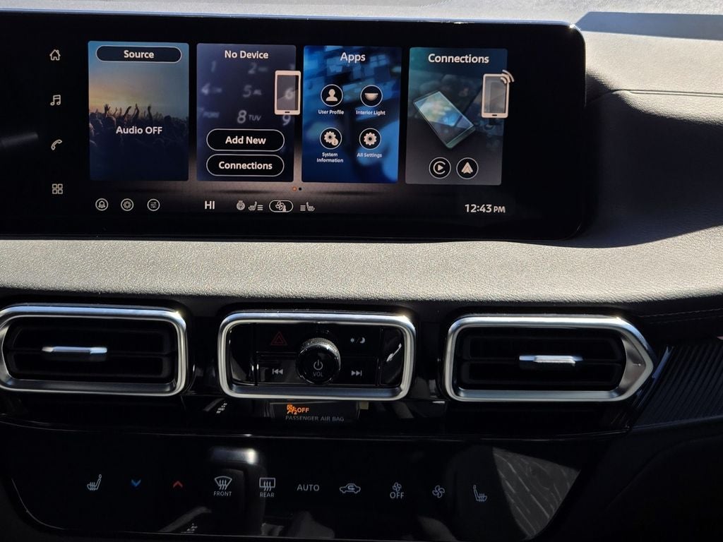 - Radio: AM/FM w/RDS/MP3 -inc: 4 speakers, 12.3" NissanConnect multimedia center display, Bluetooth® hands-free phone system, streaming audio via Bluetooth®, hands-free text messaging assistant, Siri Eyes Free, Google Assistant voice recognition, wireless Apple CarPlay and Android Auto and (2) front USB connection port (type C)