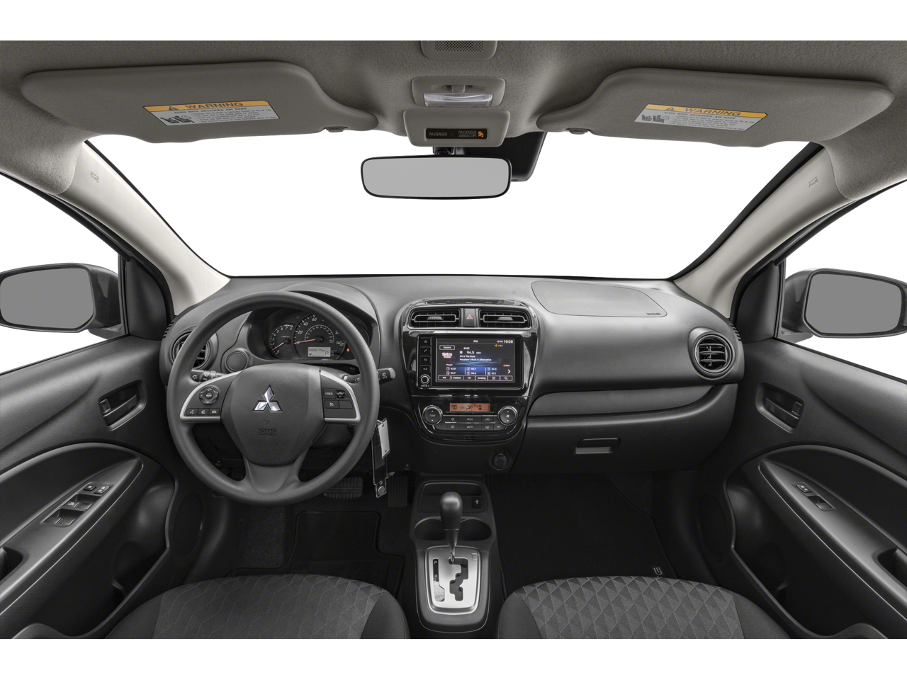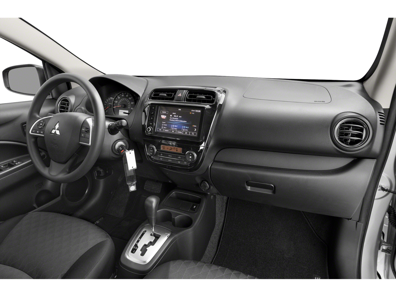 4D Hatchback, 1.2L 3-Cylinder DOHC MIVEC, CVT, FWD, Black, Black Cloth, 4 Speakers, ABS brakes, Air Conditioning, AM/FM radio, Android Auto & Apple CarPlay, Automatic temperature control, Brake assist, Bumpers: body-color, Delay-off headlights, Driver door bin, Driver vanity mirror, Dual front impact airbags, Dual front side impact airbags, Electronic Stability Control, Exterior Parking Camera Rear, Fabric Seat Trim, Front anti-roll bar, Front Bucket Seats, Front reading lights, Front wheel independent suspension, Illuminated entry, Knee airbag, Low tire pressure warning, Occupant sensing airbag, Overhead airbag, Panic alarm, Passenger door bin, Passenger vanity mirror, Power door mirrors, Power steering, Power windows, Radio: 7.0 Smartphone-Link Display Audio (SDA), Rear window defroster, Remote keyless entry, Speed control, Split folding rear seat, Spoiler, Steering wheel mounted audio controls, Tachometer, Tilt steering wheel, Traction control, Trip computer, Variably intermittent wipers, Wheels: 14 Steel w/Wheel Covers.