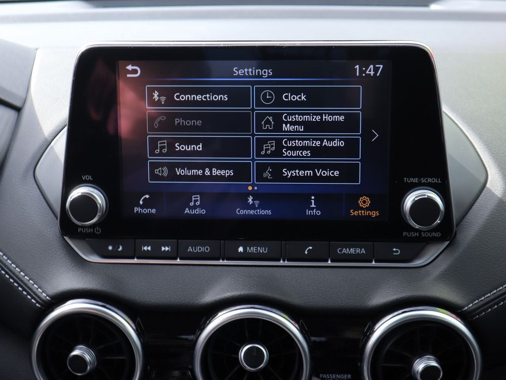 - Radio: AM/FM w/RDS/MP3/Aux-In -inc: 6 speakers plus 2 tweeters in A-pillar, 8" color display w/multi-touch control, streaming audio via Bluetooth®, Bluetooth® hands-free phone system, hands-free text messaging assistant, Siri Eyes Free, Google Assistant voice recognition w/Apple CarPlay and Android Auto, NissanConnect, (1) front USB connection port (type A), (1) additional front USB (type C), (1) charge-only USB (type A) center console and SiriusXM radio w/advanced audio features